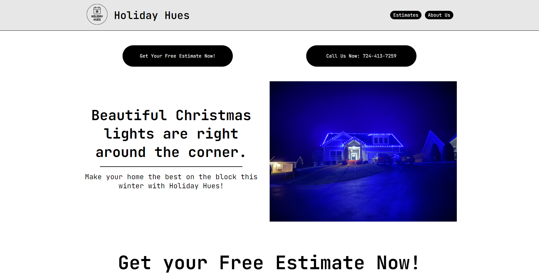 Created a fully responsive website for my christmas light installation business. Deployed the website online through the domain holidayhues.org.