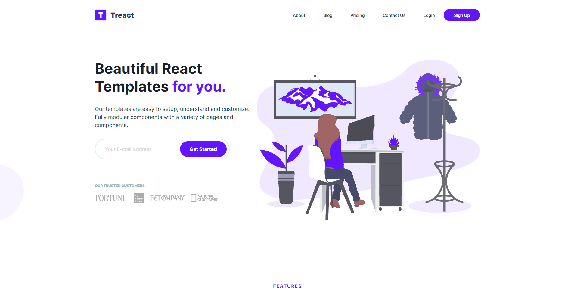 Cloned a modern landing page, Treact, using vanilla HTML, CSS, and JavaScript. Emphasis on best flex box practices, scalability features, and responsive on all devices.