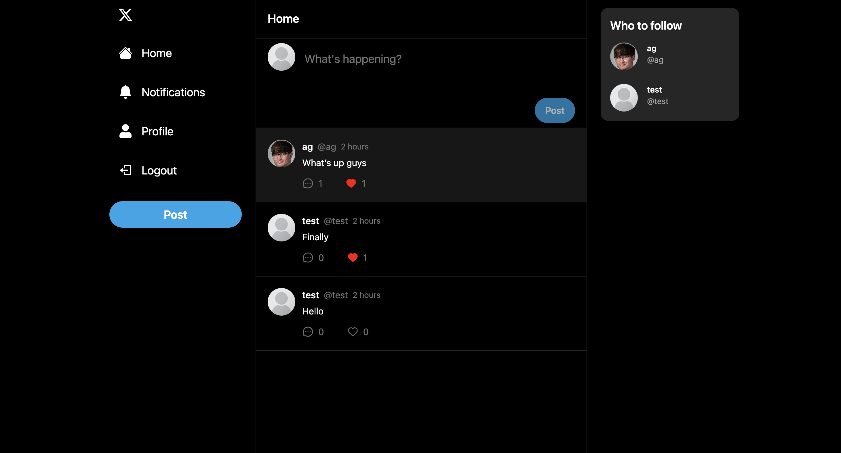 I added user authentication with NextAuth. Also implemented like, comment, and follow features. Notification system put up for likes, comments, and follows. There is also an image upload with base64 strings. For storage, user and post data are stored with Prisma and MongoDB. Finally deployed via Vercel.